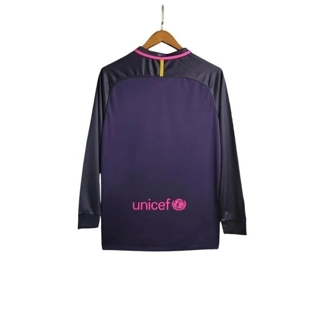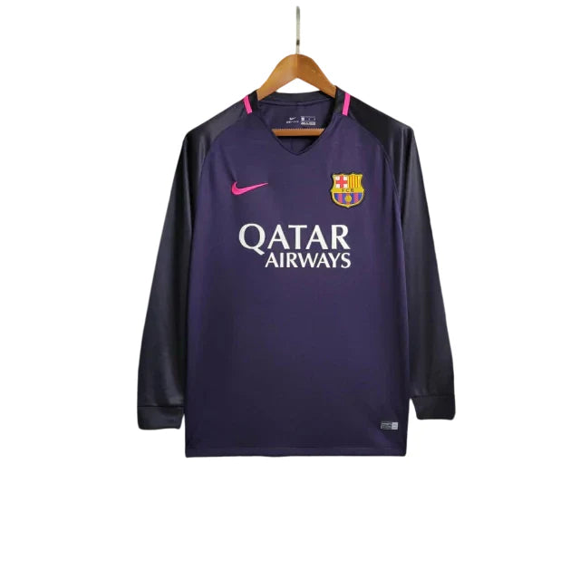 Camiseta Nike de manga larga retro para aficionados del Barcelona 16/17 (visitante) para hombre - Morada